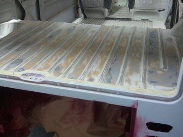 Mr Bright side the 1971 Sunroof Deluxeposted on 19 September 2010 | posted in Mr Brightside the 1971 Sunroof Deluxe | ( 16 ) CommentsHere is Mr Bright side and is booked in for a full body bare metal restoration and will be finished in Chianti red with a white roof. ![]() ![]() ![]() ![]() Stripping Started ![]() Windows out ![]() Rust to be dealt with ![]() ![]() ![]() Dirt under the screen but when removed it seems pretty sound ![]() Rust on the front floors awaiting attention ![]() ![]() ![]() Signs of previous accident damage where a slide hammer has been used ![]() Doors Bare metaled ![]() Engine lid stripped and to our amazement found corrosion underneath the sound paint, this just shows what maybe lurking underneath dry Californian paint ![]() Here are more signs of accident damage ![]() ![]() Here there has been a battery tray added to this rotten corner ![]() Inside the nearside corner, the battery tray has folded up from the corner in a previous accident ![]() Van is now bare metaled ![]() ![]() Previous damage with filler removed ![]() Sunroof removed and roof flatted ![]() ![]() ![]() Steam cleaned inside, in the engine bay and underneath. ![]() looking better without the sand, oil and grease! ![]() Old Rear corner cut out. ![]() ![]() New one cut to shape ![]() A few highs and lows dealt with first ![]() corner clamped up to get the reflector holes correct ![]() We managed to save the battery tray, clean it up and coated it with a zinc primer. We had to fold a return edge on the edge for the engine lid seal as the previous accident had squashed it too much. ![]() sitched in place ![]() Floor cut out ![]() ![]() here we found a bit of rot and dealt with this first ![]() New piece folded and welded in ![]() ![]() Centre floor section started too ![]() Repair panel welded and seam sealed ![]() Bare shell phosphated and baked prior to any coating ![]() ![]() ![]() Here is the Epoxy primer which is sinkage free and a very high moisture proof anti-corrosive barrier. Now the shell is locked down,we dont have to worry about flash or long term rust. ![]() ![]() Body repairs now awaiting attention ![]() Engine bay and floor painted with epoxy and followed with 2k primer ![]() ![]() ![]() ![]() ![]() Now the Fun starts ! ![]() Here we have been going around the van with a tekna spotter pulling out the accident damage, dents and heat shrinking the metal to put the strength back in. After this process minimal filler will be required as apposed to slabbing it in as thick as cement. ![]() The black areas are the inside of the dent ![]() In total We have used over 500 studs! ![]() After, Before filler ![]() Now very level and strong. ![]() ![]() This top crease was very weak and was popping in and out. ![]() Heat shrunk and probably stronger than when new ![]() ![]() ![]() Leveled ![]() Now the worst bits. ![]() ![]() Getting there! ![]() ![]() ![]() ![]() ![]() ![]() Here we are leveling out the minor dents and ripples ![]() ![]() ![]() Here again the guide coat has showed up minor ripples and dents which are easily missed as they are so small but show terribly when painted glossy. ![]() These four holes are to be welded up as the doors had hideous truck mirrors on. ![]() After ![]() Sliding door With rot around the window frame ![]() Welded up and finished ![]() Filler cap blasted to remove rust. This was a test piece for our new blaster ![]() Panels all phosphated,Baked and epoxied and Baked again. ![]() ![]() Dash epoxied ![]() ![]() ![]() ![]() ![]() Roof was surprisingly ripply. ![]() ![]() Many dents in the roof ![]() As we like to chase perfection we leveled the floor where the deep pitty marks were from corrosion ![]() All crash damage dents and ripples leveled! ![]() ![]() ![]() This was the most time consuming part as the rear end has had bad previous damage/repairs ![]() Again the inside we filled so it looks slightly more original ![]() ![]() Tank cover tinted and lacquered to near original colour ![]() Ready to be rolled in the booth for a 15 min bake at 70 degrees to loose any moisture before coating ![]() A coat of epoxy again followed with a 2k primer/surfacer ![]() ![]() ![]() The floor and step we welded and repaired ![]() This is the side we repaired ![]() Looking straight! ![]() ![]() An even guide coat ![]() ![]() ![]() From this -> ![]() To this !!! ![]() Block Sanding Started! ![]() Floor edges seam sealed ![]() The moon vents and tailgate hinges were painted first as they're intricate and can be masked off or pushed in leaving the outside body to be concentrated on. ![]() Engine bay sanded and seam sealed ![]() ![]() ![]() ![]() Cab floor painted in the original pastel white ![]() ![]() Although the cargo floor is covered we replaced the rot and painted the repair in pastel white to give further protection. ![]() Engine compartment painted and baked. ![]() ![]() ![]() Whilst talking to the customer we decided it was best to paint the floor here as some of it maybe seen under the upholstery and the spare wheel compartment was badly rusted so we carefully sandblasted it and treated it to a chemical etch before paint, removed any previous glue and flatted the original paint. ![]() ![]() ![]() ![]() Primered Shell waiting to be pushed into the booth baked, painted and baked again! ![]() ![]() ![]() All seams sealed for the perfect smooth depth and so the paint doesn't crack in the future ![]() ![]() 6 wet coats of chianti red ![]() ![]() ![]() ![]() ![]() ![]() ![]() ![]() ![]() ![]() The seams look perfect this way! ![]() ![]() ![]() Lined out & Masked off for the cloud white roof ![]() ![]() ![]() Unmasked & baked ![]() ![]() ![]() ![]() ![]() ![]() ![]() ![]() ![]() ![]() ![]() ![]() ![]() ![]() ![]() ![]() This photo was taken facing the painted panel to show the depth as you can see the reflection of the posters on our wall which are around 4ft away from the vehicle in normal workshop lighting. ![]() Front Bumper built up and Ready to slide on. ![]() Low spots high